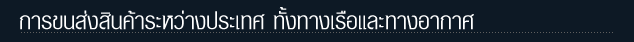 บริการขนส่งสินค้าระหว่างประเทศ ทั้งทางเรือและทางอากาศ โดยบริษัทมีเครือข่ายในต่างประเทศ ( global network) อยู่ทั่วทุกมุมโลก ทั้งทวีปเอเชีย ยุโรป อเมริกา แอฟริกา และออสเตรเลีย ซึ่งสามารถให้บริการทั้งทางเรือ ทางอากาศ รวมถึงการขนส่งแบบเต็มตู้ (FCL) และแบบไม่เต็มตู้ (LCL) ตามความต้องการของท่าน รวมถึงบริการขนส่งสินค้าทางอากาศ ครอบคลุมทุกพื้นที่ ไม่ว่าสินค้าท่านจะขนาดเล็ก หรือมีน้ำหนักมาก heavy cargo เราก็สามารถให้บริการท่านได้ โดยการให้บริการผ่านเครือข่ายสายการบินมืออาชีพไปยัง airports ปลายทางทั่วโลก |